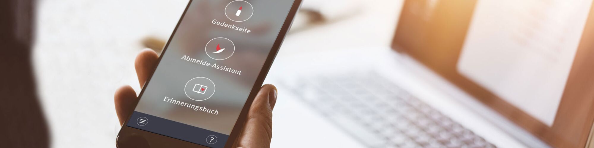 Hier können Sie viele wichtige Dinge im Trauerfall per Mausklick regeln, Erinnerungen an den Verstorbenen bewahren, Ihre Trauerdrucksachen inklusive Empfängerlisten mit uns abstimmen und Ihre persönliche Musikauswahl für die Trauerfeier zusammenstellen. Zu jeder Zeit, bequem von zu Hause aus.